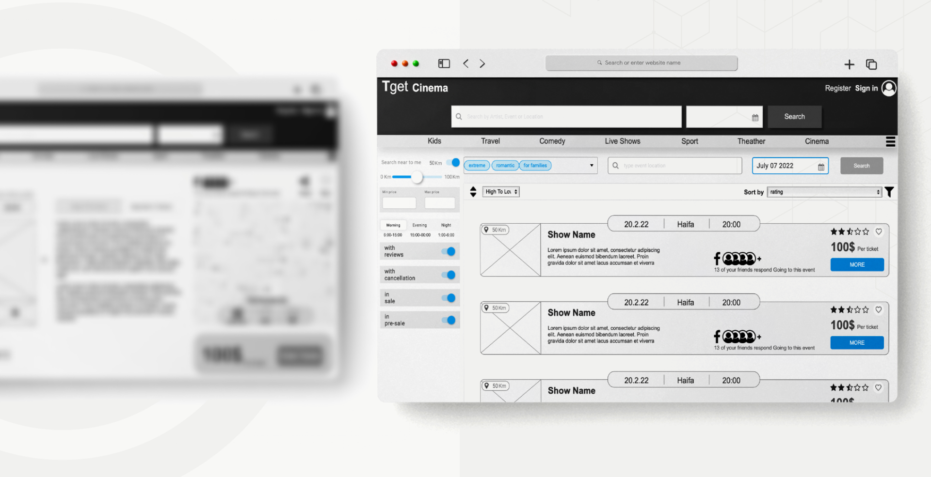 Tget is an online tickets marketplace, where the user can browse through all events,